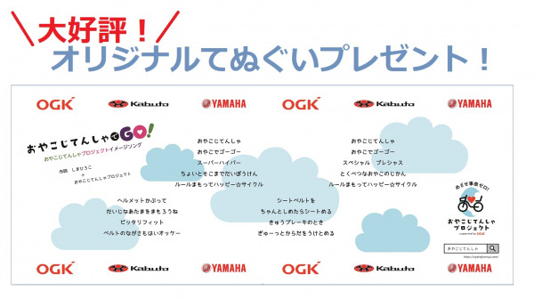 「おやこじてんしゃプロジェクト」は自転車用チャイルドシートメーカー オージーケー技研株式会社とママコミュニティPowerWomeプロジェクト(運営:プロジェクト株式会社)の協同プロジェクトであり、趣旨に賛同いただいた関連メーカー(オージーケー技研株式会社、株式会社オージーケーカブト、ヤマハ発動機販売株式会社)の協賛で活動しています。