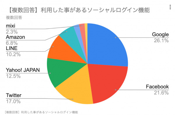 40%の人が「Facebookでのソーシャルログイン機能を一番よく利用している」と回答しました。