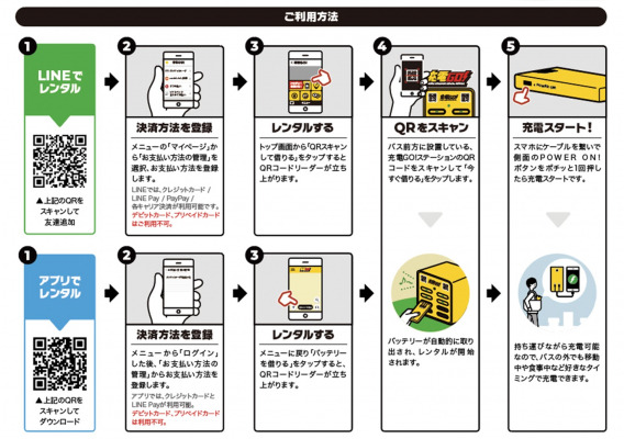 ステーションはバス前方・乗降口付近に設置していますので、ご利用を希望される人はバスが停車中にレンタルをお願いします。今後も充電GO!は、県内事業者様や沖縄のパートナー企業などにおける多様な充電ニーズを取り入れながら、より多くの人が気軽にレンタルすることができるよう、積極的にサービス展開してまいります。
