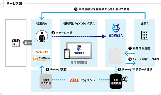 (1) 「FUKUPE」における従業員への資金提供を、au PAY※1またはWebMoneyプリペイドカード※2へのチャージとするサービスを提供する事業。