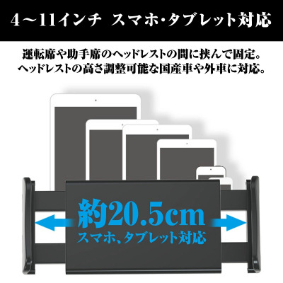 商品名:「スマホタブレット車載ホルダー 後部座席用伸縮式」
