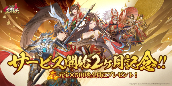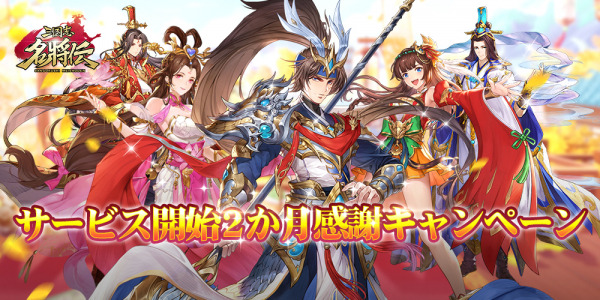 プレイいただいておりますユーザーの皆様への感謝の気持ちを込めまして、「三国志名将伝」サービス開始2か月感謝キャンペーンを実施いたします。