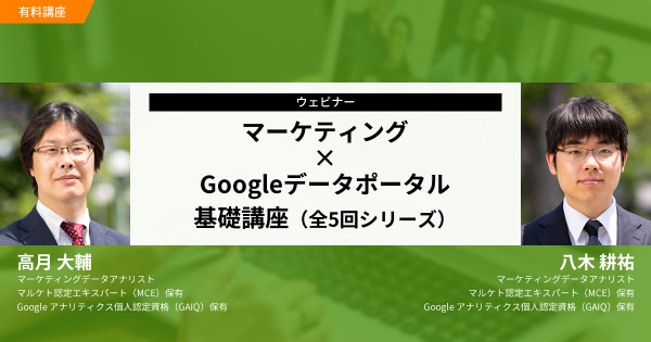 本講座では、PDCAをスピーディーに回し、高い成果を挙げるマーケティング活動を行うために、Googleデータポータルの基本から実践までを全5回で解説します。