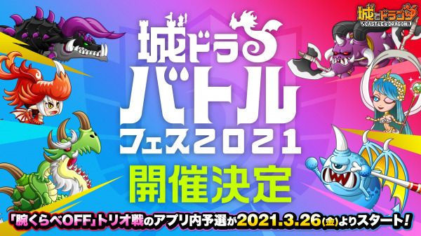 株式会社アソビズム(本社:東京都千代田区、代表取締役:大手智之)は、App Store・Google Playにて 好評配信中の『城とドラゴン』(以下、城ドラ)のプレイヤー王者を決めるオンラインイベント「城ドラバトルフェス2021」の開催が決定したことをお知らせいたします。