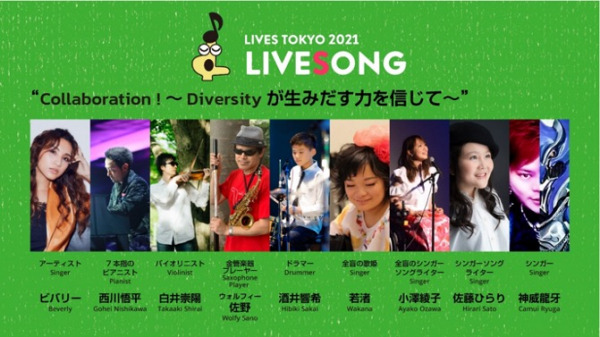 バイオリニストの白井崇陽さん、シンガーのBeverlyさんが東京ミッドタウンの会場にライブ出演。その他、昨年もゲスト参加いただき、東京2020パラリンピック閉会式で演奏された7本指のピアニストの西川悟平さん、同じく東京2020パラリンピック閉会式にドラム付き車いすで出演された小澤綾子さん、そして、東京2020パラリンピック開会式で国歌斉唱を担当されたシンガーソングライターの佐藤ひらりさんほか、ご自身の特性を活かして活動を行うアーティストの皆さんと、LIVESプロジェクトのテーマソング「Happy now」を映像でコラボレーションします。