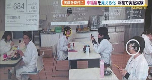 静岡県浜松市のデータ連携基盤を活用した実証実験プロジェクトとして採択されている「AIによる街の幸福度向上と可視化プロジェクト」は、現在、浜松市内4社7カ所に設置しています。人の幸福度をデータに見える化して社会を良くすることに役立てられないかという、ユニークな実験に注目が集まり、今回、その内の一社である精肉の卸と加工を手掛ける企業での実証実験の様子が取り上げられました。