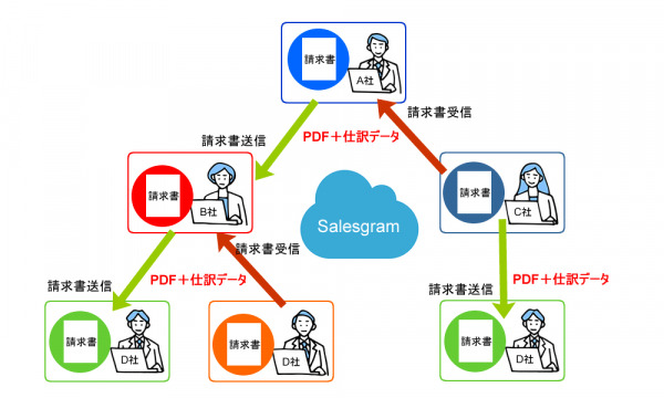 「Salesgra(セールスグラム)請求」は、日本の請求業務にイノベーションを起こすサービスです。その理由は、プラットフォーム化とD2D(digital to digital)にあります。Salesgra(セールスグラム)を利用するためには、取引先から招待されて、それを承認する必要があります。承認すると取引先同士がコネクト状態となり、電子請求書の送受信が可能となります。取引先と取引先がコネクトされ自動的に利用が増殖する電子請求書のプラットフォームを目指しています。さらにD2D(digital to digital)に完全に振り切った唯一のシステムとなります。Salesgra(セールスグラム)は、最初から電子データのみの利用で設計されており、紙の利用は一切考えておりません。