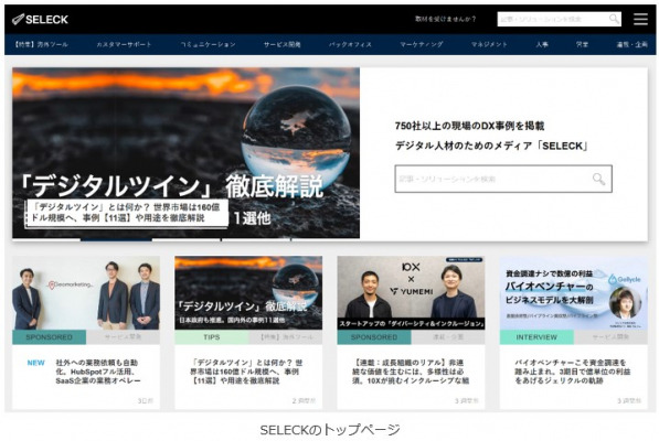 一方、SELECKは、ビジネスWebメディア「SELECK」を運営しています。スタートアップから大企業まで約750社のデジタル化事例やノウハウなど、およそ1,500件以上の記事コンテンツを発信し続けてきました。直近ではDXや内製化支援に注目する多くの企業人を読者に抱えると同時に、取材対象者やスピーカーとしても登場してそれぞれから質の高い情報を発信し、B2B領域における新たなコンテンツマーケティングのプラットフォームを形成しています。