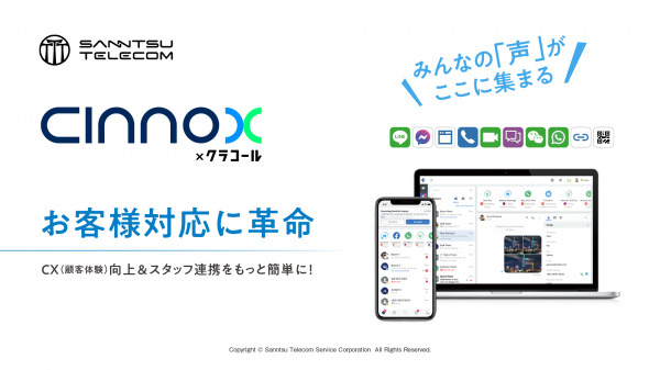 2022年1月4日(火)、ビジネス向けのクラウド通信サービスを提供する「株式会社三通テレコムサービス」は、複数の問い合わせ窓口(電話・チャット・ビデオ通話・各種SNSなど)を一括管理できる「クラコールCINNOX(シノックス)」をリリース致しました。