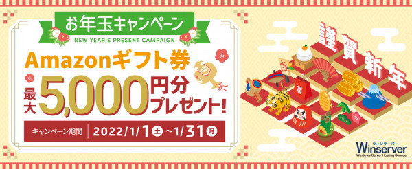 Winserver(ウィンサーバー/運営会社:アシストアップ株式会社)は、2022年1月1日(土)~1月31日(月)の期間、お年玉キャンペーンを実施いたします。