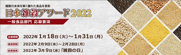 雑穀を使った優れた食品の表彰を通じて、健全な雑穀の市場形成につなげる制度です。2011年の創設から、これまでに延べ200点を超える優れた食品が金賞を受賞し、雑穀の魅力やおいしさを多くの方に伝えています。