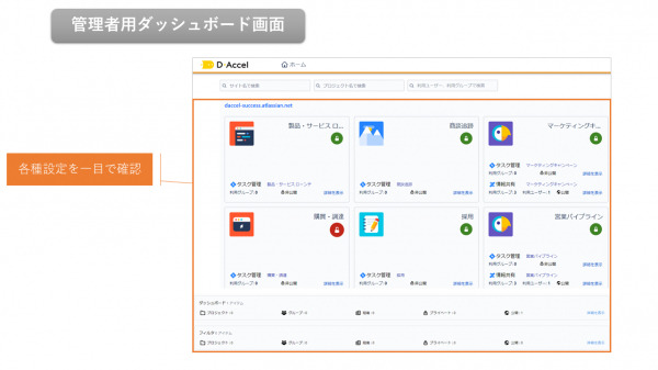 ビジネス環境の激しい変化に対応していくには、各分野で自社にとって最適なサービスを選んで組み合わせることでシステムを構築するベスト・オブ・ブリードというアプローチが有効ですが、画面遷移や各種権限管理などの統合性に課題が残ります。ぽちっとDXは、豪ソフトウェア企業Atlassian Pty Ltd.(以下:アトラシアン社)が開発・提供するJira Work ManagementとConfluenceをベースに、日本企業のビジネスチーム向けにカスタマイズを施したDXソリューションです。ふたつのクラウドツールを組み合わせているため、タスク管理に加え情報共有・蓄積もでき日常的な業務をまとめて効率化できます。また新機能によってITツールになじみのないユーザーでも迷うことなくご利用いただけるようにUIを改善、ツール管理者向けには設定を一目で確認できるダッシュボードを追加することで、より安心・安全・簡単にご利用いただけるようになりました。