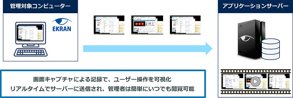 PCやサーバーの操作内容を画面キャプチャとテキストログで記録し、リアルタイムで可視化する証跡管理ソリューション「Ekran System(R)」(以下、Ekran)を、クラウド環境で構築および運用する支援をワンストップで行うSaaS型クラウドサービスです。テレワーク時代に求められる情報漏えい対策機能を持ち、組織内部の不正操作によるセキュリティリスクを防止します。