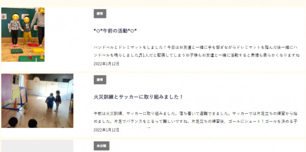 またタグをつけて「普段の支援活動内容」や「大事なお知らせ」といったように、分けて表示させることができます。