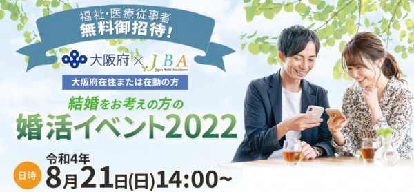 8/21(日)開催【大阪府×JBA】結婚をお考えの方の婚活イベント2022