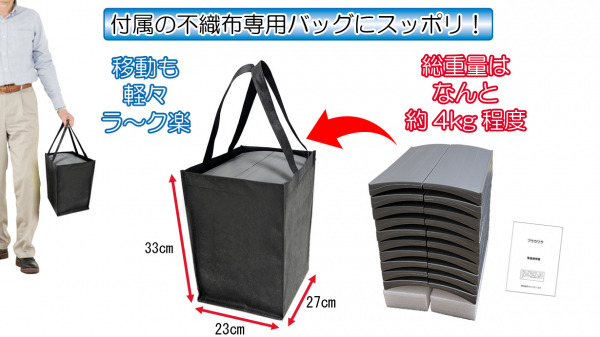 不織布専用バッグ1枚、日本語説明書兼保証書1枚