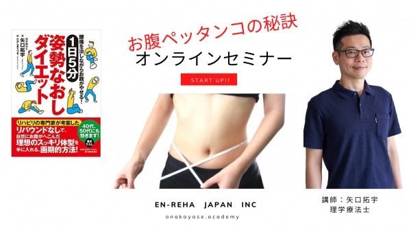 本セミナーでは、1日5分のトレーニングを行うことで腰痛を予防しお腹がやせるダイエットトレーニング方法を一般社団法人日本エンカレッジ・リハビリテーション協会 お腹やせアカデミー事業部 代表の矢口氏より解説いただきます。
