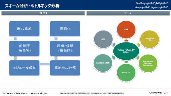 弊社講演では、NEV市場、NEV・車載バッテリーメーカー及びリサイクル&リユース関連企業の動向、法規制、経済性分析や市場規模分析等の包括的な視点を用い、中国の車載リチウムイオン電池のリサイクル&リユース市場について、紐解きます。