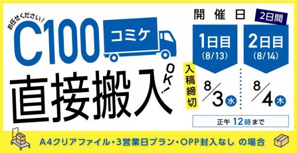 コミックマーケット100 特設ページ:https://www.kasamart.jp/flow/natsucomi/