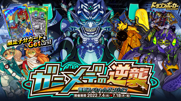 株式会社アソビズム(本社:東京都千代田区、代表取締役:大手智之)は、App Store・Google Playにて好評配信中のリアルタイム合体カードバトル『ドラゴンポーカー』で、2022年7月4日(月)より復刻スペシャルダンジョン「ガニメデの逆襲」を開催いたします。