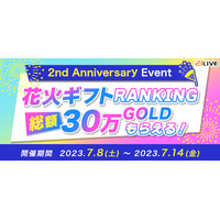 【21LIVE・2周年】7月8日(土)より「花火ギフトランキング」開催!総額30万GOLD獲得のチャンス☆たくさんの花火を集めて記念日を祝おう♪