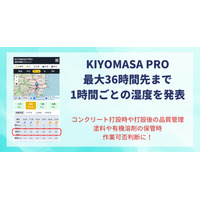 建設工事現場に特化した天気予報サービス『KIYOMASA PRO』 現場ピンポイントの最大36時間先の湿度予測コンテンツをリリース ―塗装作業管理や静電気による引火リスクの低減に有効-