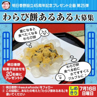 わらび餅に関するあるある体験を投稿して明日香野和菓子を貰おう! 明日香野45周年キャンペーン第25弾