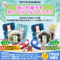 好きな明日香野和菓子のセットを選んで貰おう! 「海に和菓子を持って行くならどっち?」キャンペーン開始!