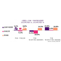 エヌピーディー・ジャパン、最新外食・中食レポート「2023年5月、外食・中食の売上は2019年同月比3.1%増、フルサービスを中心に大きく回復」を公表