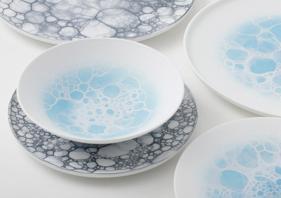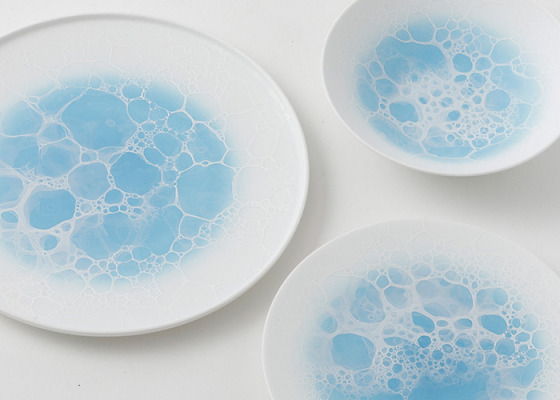 特殊な技法で、海の底から水面を見上げたようなキラキラした表情を器の中に閉じ込めた、ため息の出るような美しい器「泡」シリーズが届きました。