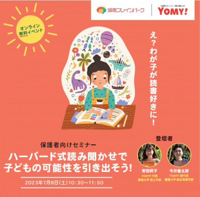 そこで「城南ブレインパーク」では、対話型オンライン読み聞かせ「YOMY!」と共同で、保護者セミナー「ハーバード式読み聞かせで子どもの可能性を引き出そう!」をオンラインにて開催。わが子を読書好きにするメソッドを大公開します。読書が苦手なお子さまでも、明日からの読み聞かせが盛り上がること間違いなしの内容です。
