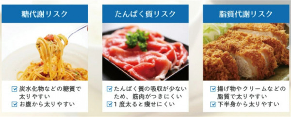 ●たんぱく質リスク:筋肉がつきにくく痩せづらい体質かどうか