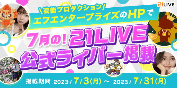 7月3日(月)より、21LIVEの7月度公式ライバーが芸能プロダクション・株式会社エフエンタープライズ(F.Enterpris)のホームページに掲載されます。