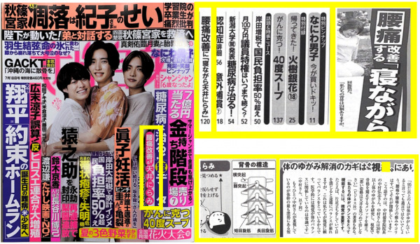 この特許器具を使わずに、「目」から「短回旋筋」を鍛える体操とその理論が、2023年7月4日発売『女性自身』7月18号では、1頁にまとめて掲載されました。