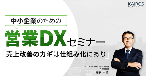 当社が提供するクラウド型サービス「Kairos3」は、中小企業をはじめ2,000件ものユーザーさまにご利用いただいています。本セミナーでは、当社がこれまで中小企業のマーケティングや営業を支援する中で培ったノウハウをもとに、中小企業が営業DXを成功させ、売上を改善するためのポイントを解説します。
