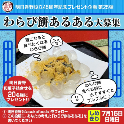 2023年6月30日より、45周年キャンペーンの第25弾「わらび餅あるある大募集」を開始しました。