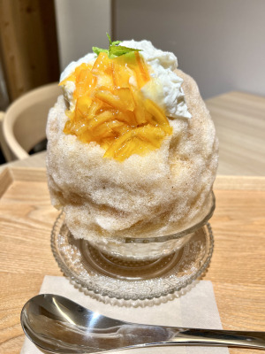 4、生姜クリームのほんのりピリッとしたアクセントで溶けても美味しいかき氷に仕上げました
