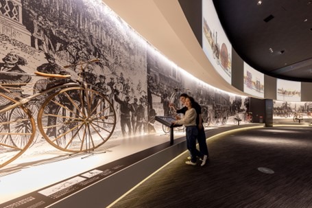 シマノ自転車博物館は、黎明期の自転車から最新のテクノロジーまで幅広く自転車の世界を紹介する、国内唯一の自転車に特化した登録博物館です。昨今、サスティナブルな社会の在り方が問われる中、環境、健康、交通、そして観光や教育など様々な課題に答えるために自転車が改めて注目されています。そんな自転車のこれからの役割を、来館者のみなさんと一緒に考えていける博物館を目指しています。