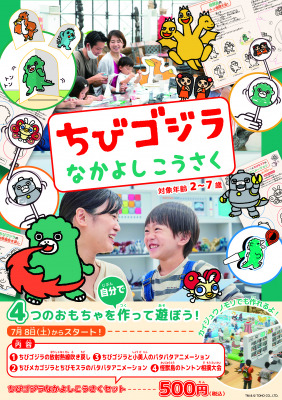 本イベントでは、全国吹き戻し製造率80%を誇る淡路島の伝統的なおもちゃを使った「ちびゴジラの放射熱線吹き戻し」や「ちびゴジラたちのパタパタアニメーション」、「怪獣島のトントン相撲大会」といった、可愛い「ちびゴジラ」たちがデザインされた3種類のおもちゃを手作りし、その場で遊ぶことができます。本クラフトキットは、約50種類の東宝特撮怪獣ソフトビニールフィギュアで遊べる、キッズ専用エリア「カイジュウノモリ」でも作成できます。作ったおもちゃはお持ち帰りができるので、ニジゲンノモリの思い出と共におうちでも楽しむことができます。『ちびゴジラなかよしこうさく』ではじめてのクラフト体験に挑戦しよう!