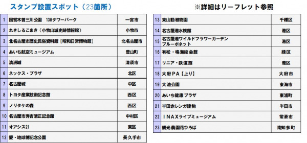 ・スタンプが設置されている愛知県内の観光スポットを訪れ、各スポットに設置されているQRコードを読み取るとスタンプを獲得できます。