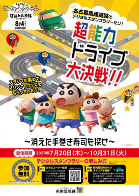 名古屋高速道路公社では、名古屋高速道路の利用促進と、沿線地域の活性化を目的として、『名古屋高速道路でデジタルスタンプラリーだゾ!超能力ドライブ大決戦!~消えた手巻き寿司を探せ~』をテーマに「名古屋高速デジタルスタンプラリー」を2023年7月20日(木)から10月31日(火)まで開催します。
