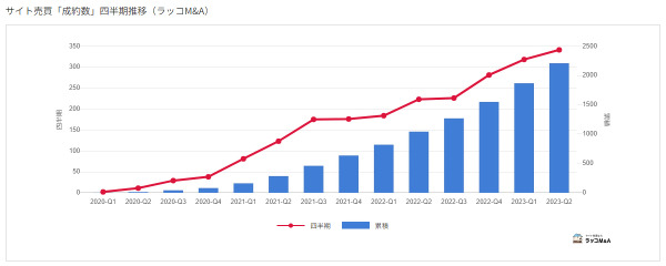 参考:【ラッコM&A】サイト売買 累計成約金額15億円突破。月間成約金額は7,000万円以上で推移