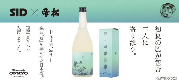 新たな音楽食品ビジネスについて、埼玉県小川町の帝松ブランドの酒蔵、松岡醸造株式会社と手を組みシド※1の楽曲を聴かせた日本酒『嘘』春ラベルが発売から1ヶ月もたたず完売。今回春に続く第2弾、夏にふさわしい爽やかな夏ラベルを発売することが決定しましたのでお知らせいたします。