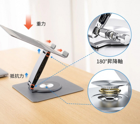 本体の金盤と昇降軸には高品質なアルミ合金材を採用しております。耐荷重量8kgで、安定性と耐久性がバツグン。