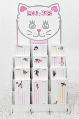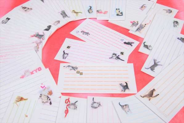 子猫の写真で作った一筆箋です。お祝いの言葉、励ましの言葉を一言添えるのにお役立ちの小さな便箋で、既製品として販売しています。デザインが東京、新宿などのご当地タイプや、罫線がpeaceや heart のテーマデザインタイプ、そして罫線が肉球の定番タイプがあり、現在26種類。新作が次々登場します。