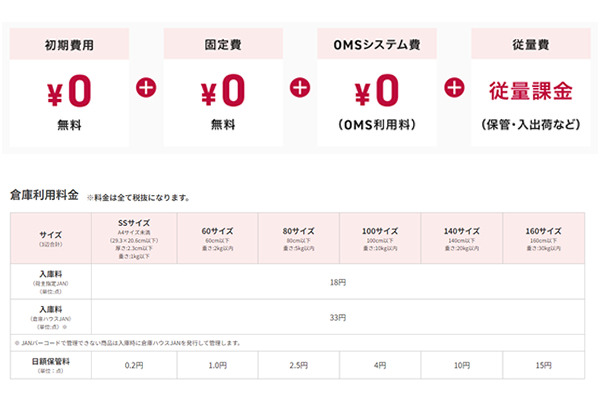 サイバーロジ料金の特徴として、初期費用、固定費0円の完全従量制でご利用いただける点と従来多額の利用料がかかっていたOMS利用料も無料としています。Shopifyなどを利用しているD2C企業でOMS+WMSサービスを利用している会社は、その分の利用料の減額が可能となります。