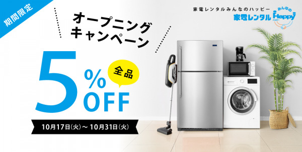 ・ 内容: キャンペーン期間中、レンタル家電全品を対象に5%OFFを実施