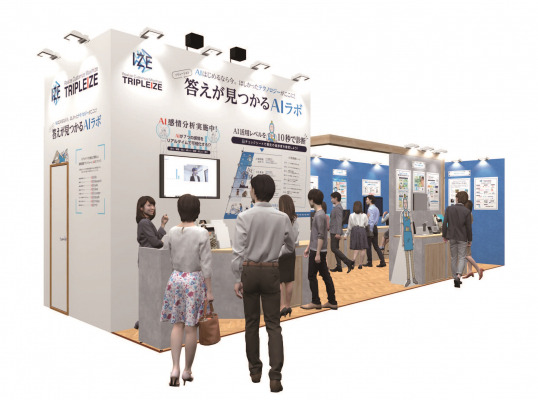 トリプルアイズのブースコンセプトは、『AIはじめるなら今。ほしかったテクノロジーがここに! 答えが見つかるAIラボ』 この夏スタートしたAIラボのサービスをご案内いたします。