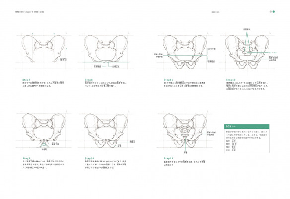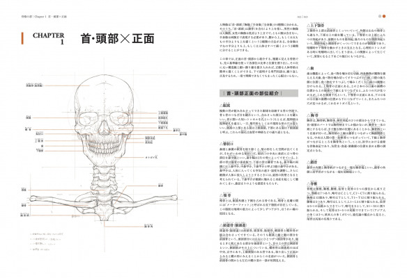 256ページにおよぶ本文では単に脊髄の数、ではなく脊髄と脊髄の相対的間隔比率、背骨のアール、頸椎の角度、顎と頬骨の関係、肋骨のつなぎ目の凹凸など、これまでにない圧倒的ディテールの情報量が収録され、イラストレーター、アニメーター、3DCGクリエイター必携の保存版となっている。手描きで描かれた正確な骨格図は線の微妙な強弱で立体感を感じさせ、レクチャー部分ではコマ撮りのようなメイキングで、その場で描けるようになる錯覚さえもたせる。さらに数値が相対的になっているため、どんなサイズ、どんな角度から描く需要にも応用がきくようになっている。
