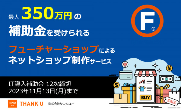 株式会社サンクユー(東京都品川区、代表取締役社長:堀川治)は、2023年10月30日、最大350万円のIT導入補助金の交付申請が可能な「フューチャーショップによるネットショップ制作」12次締切分を開始いたします。